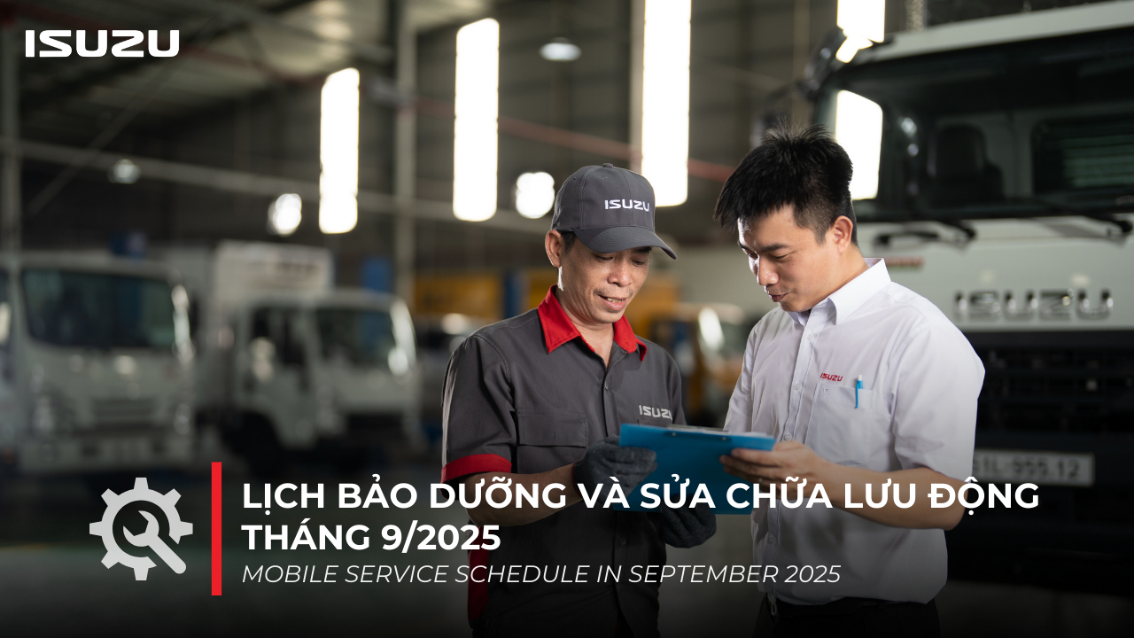 LỊCH BẢO DƯỠNG VÀ SỬA CHỮA LƯU ĐỘNG TẠI HỆ THỐNG ĐẠI LÝ ISUZU THÁNG 9/2025