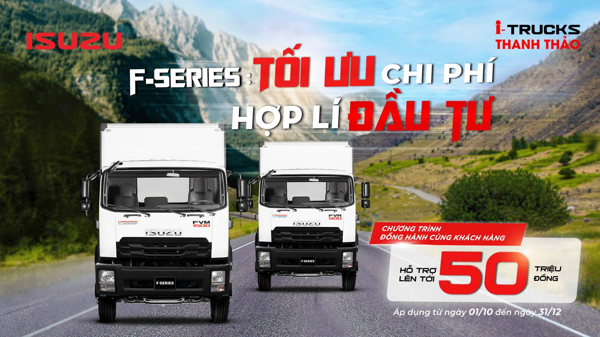 Tiếp tục Chương trình đồng hành cùng khách hàng, sẵn sàng cho hoạt động kinh doanh vào cuối năm, i-TRUCKS Thanh Thảo triển khai chương trình ưu đãi “F-Series: TỐI ƯU CHI PHÍ – HỢP LÝ ĐẦU TƯ: HỖ TRỢ LÊN ĐẾN 50 TRIỆU ĐỒNG.