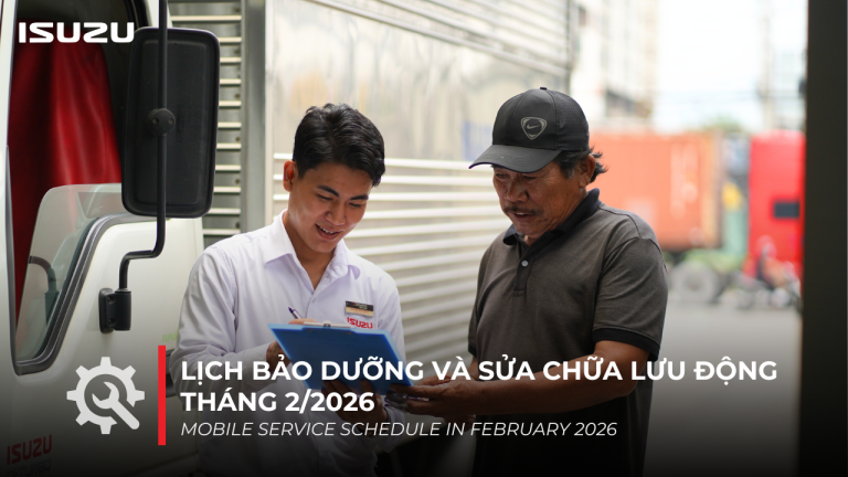 LỊCH BẢO DƯỠNG VÀ SỬA CHỮA LƯU ĐỘNG TẠI HỆ THỐNG ĐẠI LÝ ISUZU THÁNG 2/2026