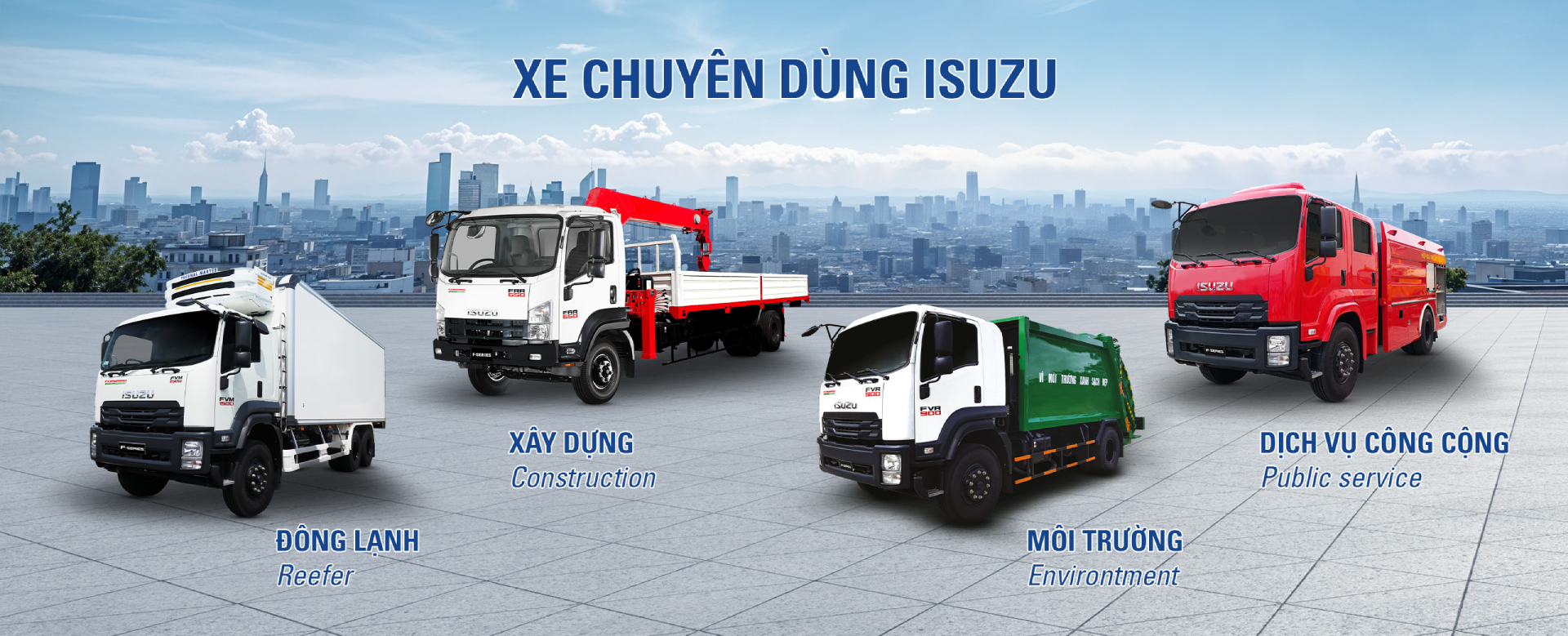 Dòng xe chuyên dùng ISUZU được phát triển trên nền tảng xe tải chất lượng cao, nổi bật với độ bền bỉ, khả năng vận hành ổn định và tiết kiệm nhiên liệu. Kết hợp cùng các loại thùng và thiết bị chuyên dụng đa dạng do những đơn vị uy tín cung cấp, xe chuyên dùng ISUZU mang đến giải pháp vận chuyển toàn diện, đáp ứng nhu cầu của nhiều ngành nghề như thực phẩm đông lạnh, môi trường, xây dựng và dịch vụ công cộng.